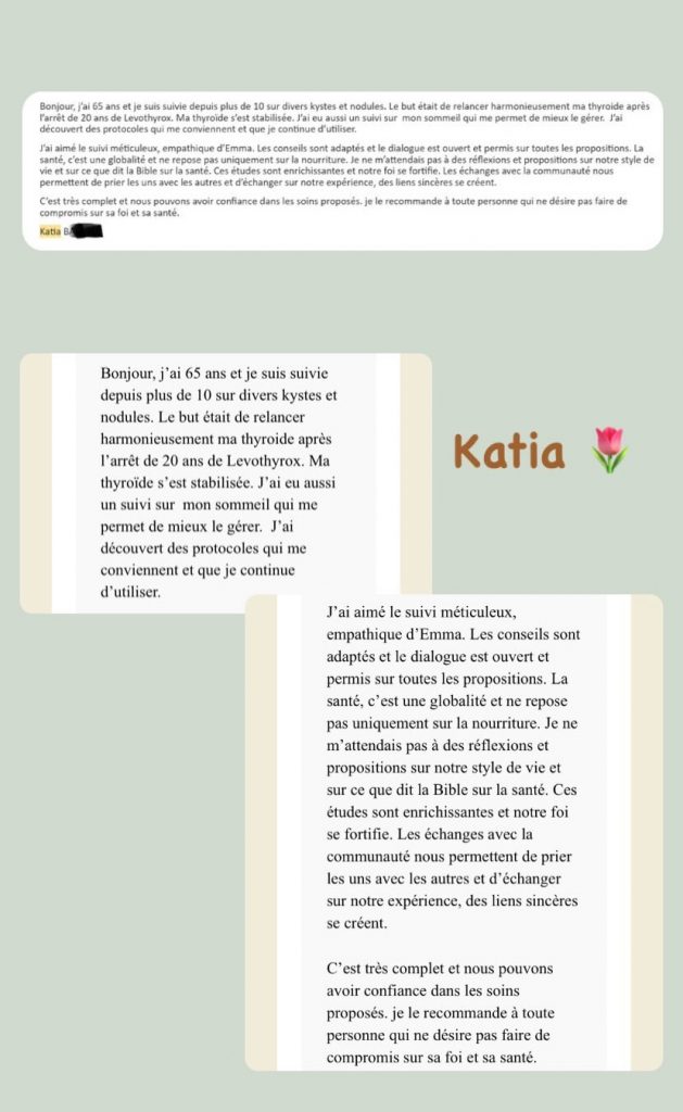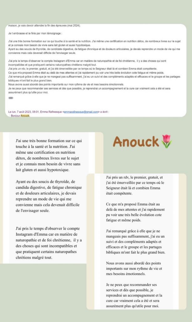 Les conseils donnés sur ce site ou lors des rendez-vous ne se substituent pas à un avis médical et ne remplacent en aucun cas vos traitements. Seul votre médecin est habilité à arrêter un traitement ou à modifier une prescription médicale. La naturopathie vient seulement en complément de la médecine classique, dans le but d’améliorer votre qualité de vie.